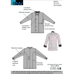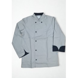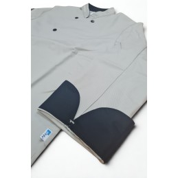 Veste de cuisine mixte manches longues, col officier intérieur noir, 6 pressions noirs 15mm, poche intérieure, aération devant et dos.