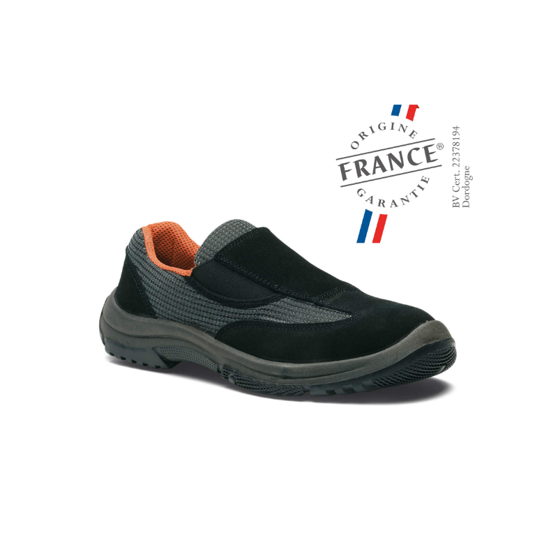 Mocassin de sécurité S1P homme en cuir croûte velours et mesh respirant. Etudié pour une utilisation polyvalente en milieu sec.