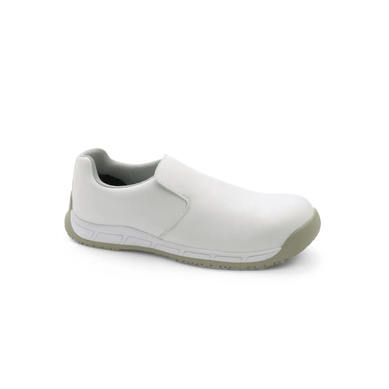 Ce mocassin de sécurité est étudié pour ne retenir aucune saleté et bactérie de part la limitation des coutures et des parties textiles.